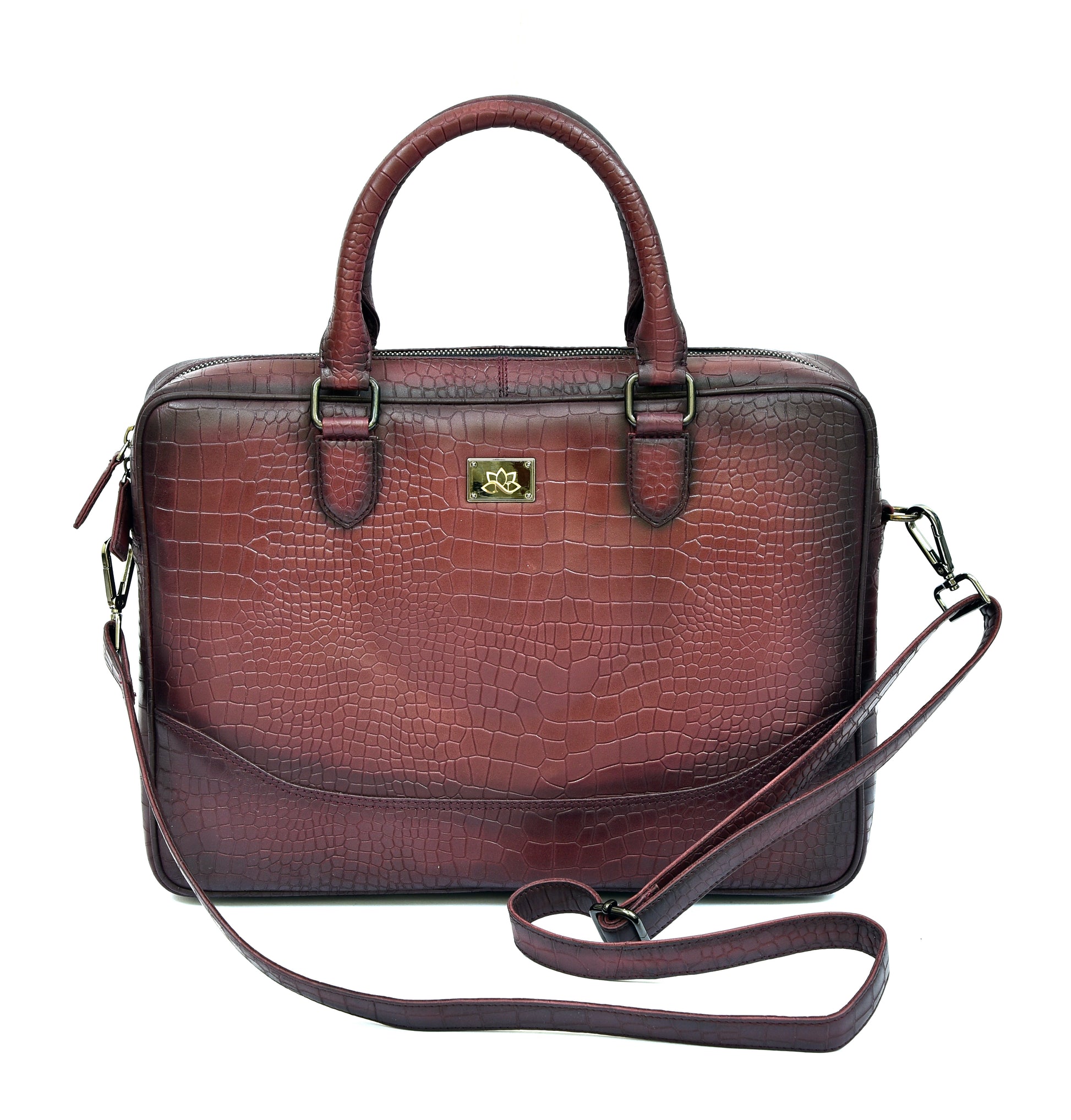 2. Exquisite Croco-Textured Genuine Leather :Indulge in the refined elegance of our laptop briefcase bag, expertly crafted from genuine leather featuring a sophisticated crocodile-textured pattern, creating a striking and luxurious accessory.