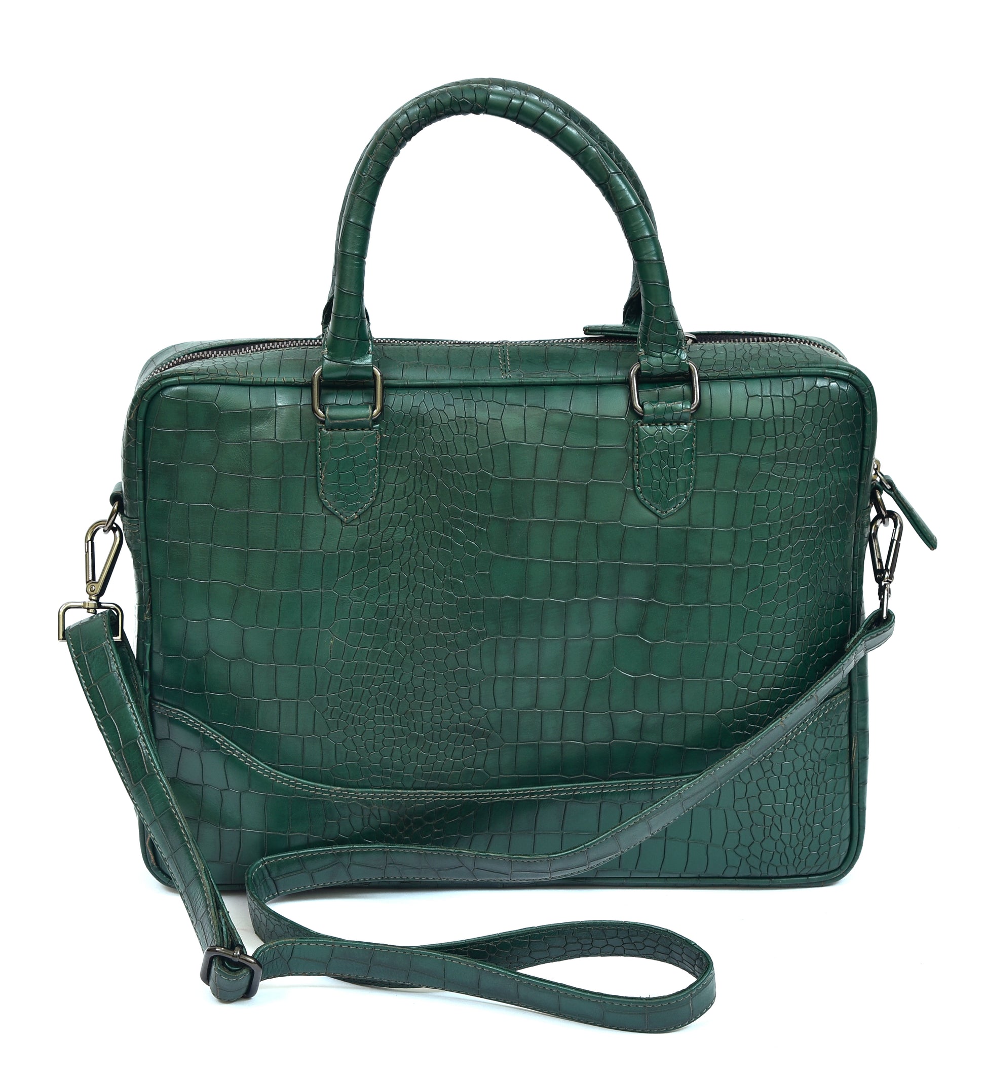 Introducing "Perseus," the epitome of sophistication and functionality. Crafted for professionals, this premium briefcase bag is meticulously designed to securely carry laptops and essentials. Impeccably fashioned from genuine leather with a luxurious crocodile texture, it elegantly stands out in captivating green and burgundy hues. Elevate your professional ensemble with the distinctive "Perseus" and exude timeless style.